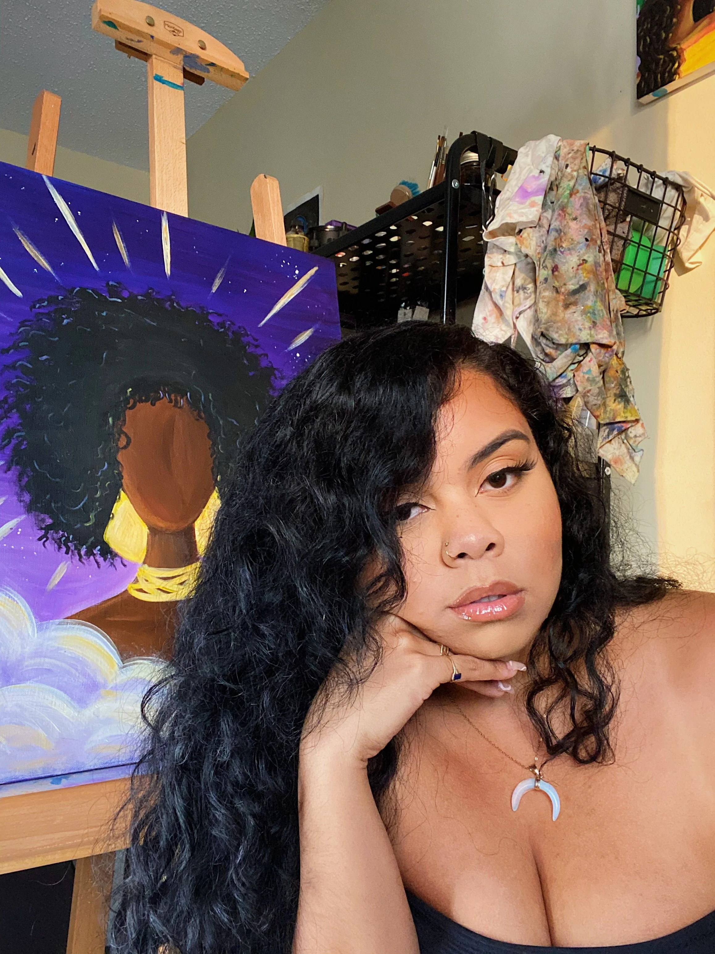 who began playing and expressing herself using different mediums from a very young age. She uses her emotions/experiences to transmute creativity through her hands as a way to express herself on the canvas and bring healing to others.